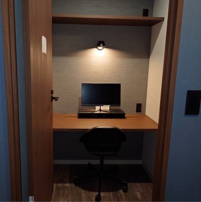 YAMATO BASEの時間貸しでも大人気のパーソナルブース。 ドア付きのパーソナルスペースで、天井が開いてい…