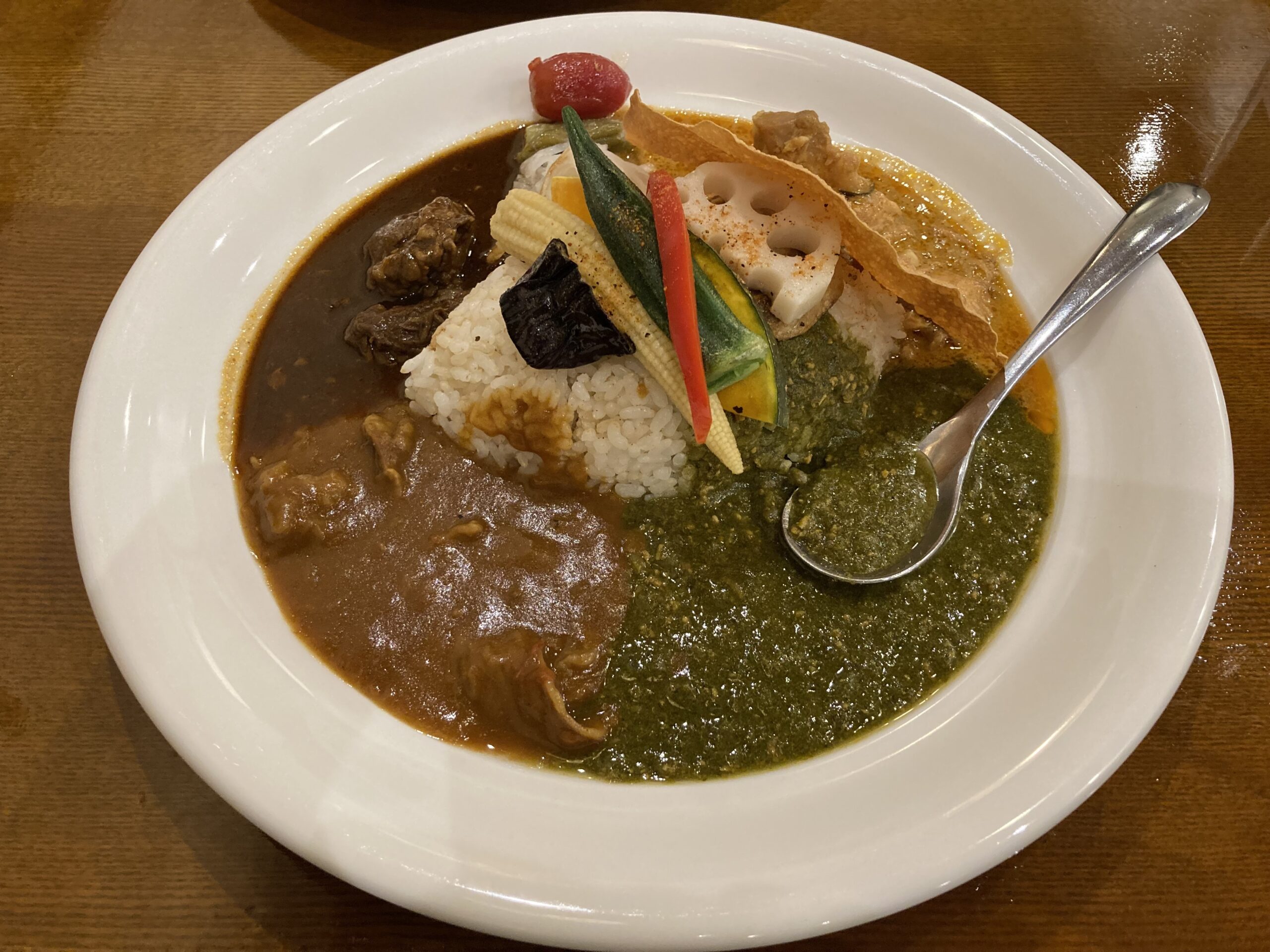 オーナーおすすめのもちいどのセンター街の名店・若草カレー本舗のカレーをYAMATO BASEでいただきましょう。